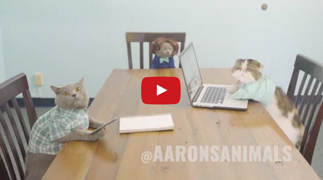 Prince Michael and Phil, the cats, struggle to get through a boring work meeting in the latest “Aaron’s Animals” short by visual effects artist, Aaron Benitez.