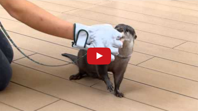 This otterly cute oriental small-clawed otter from the Sunshine Aquarium in Toshima, Japan, shows off his repertoire of tricks to earn tasty treats.