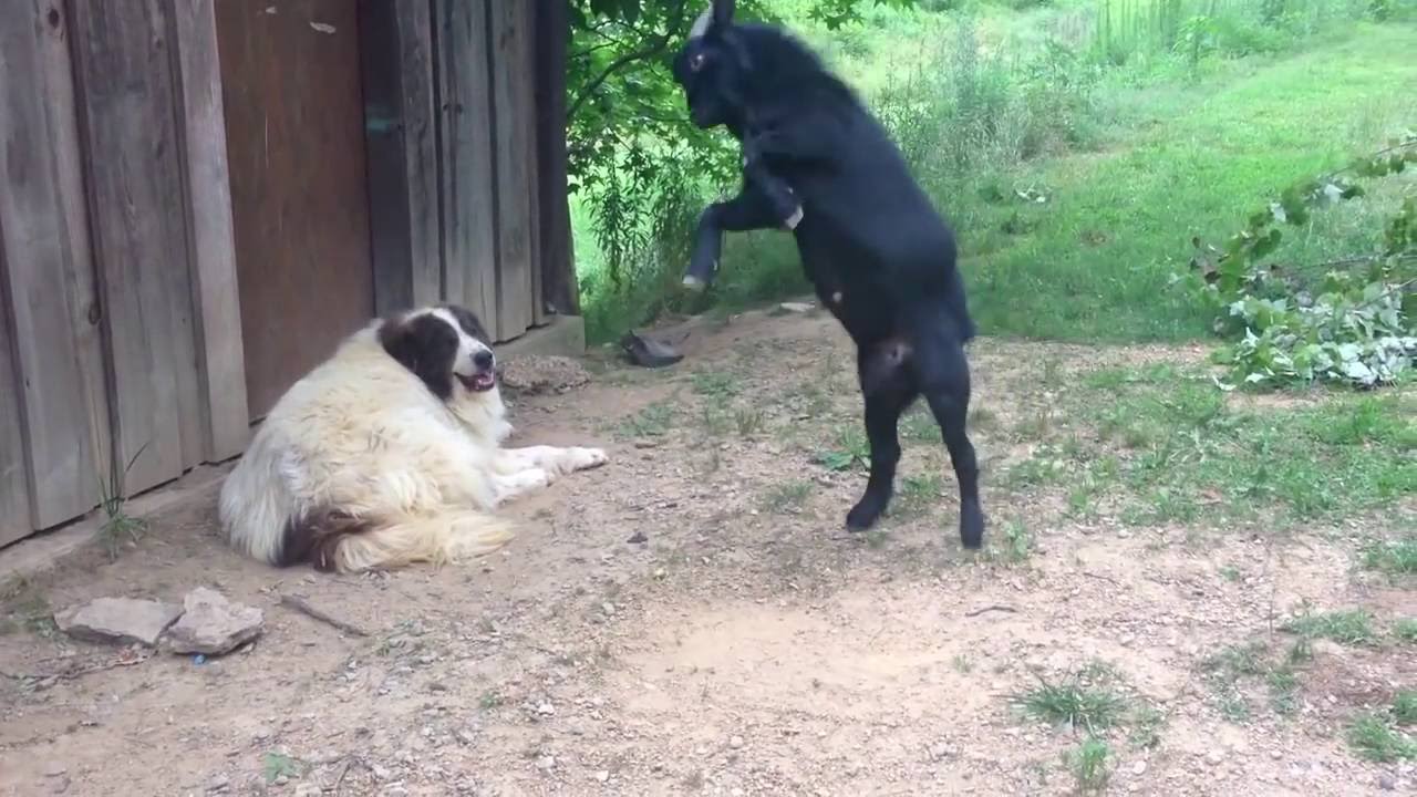 Annoying Goat Tests Big Dog’s Patience ByTastefully Offensive July 22, 2016 Memphis, the goat, challenges his canine pal, Cash, the Great Pyrenees, to a fight, but Cash would much rather just take a nap in peace.