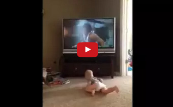 While watching Sylvester Stallone’s classic boxing film, Rocky II, this bada** baby gets motivated to follow along with Rocky Balboa’s training montage.
