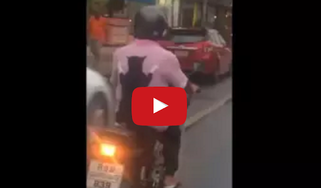 Cat Spotted Riding on Back of Scooter in Thailand by Tastefully Offensive A driver from Nakhon Si Thammarat, Thailand filmed this unusual video of a cat calmly riding on the back of his human’s scooter, like a little person.