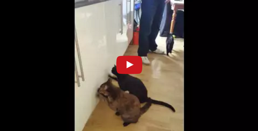 Cats Desperately Try to Get Into Food Cupboard ByTastefully Offensive July 27, 2016 Zoe Denning’s determined cats paw at the kitchen cupboard that contains their food to drop a not-so-subtle hint that they’re ready for breakfast.