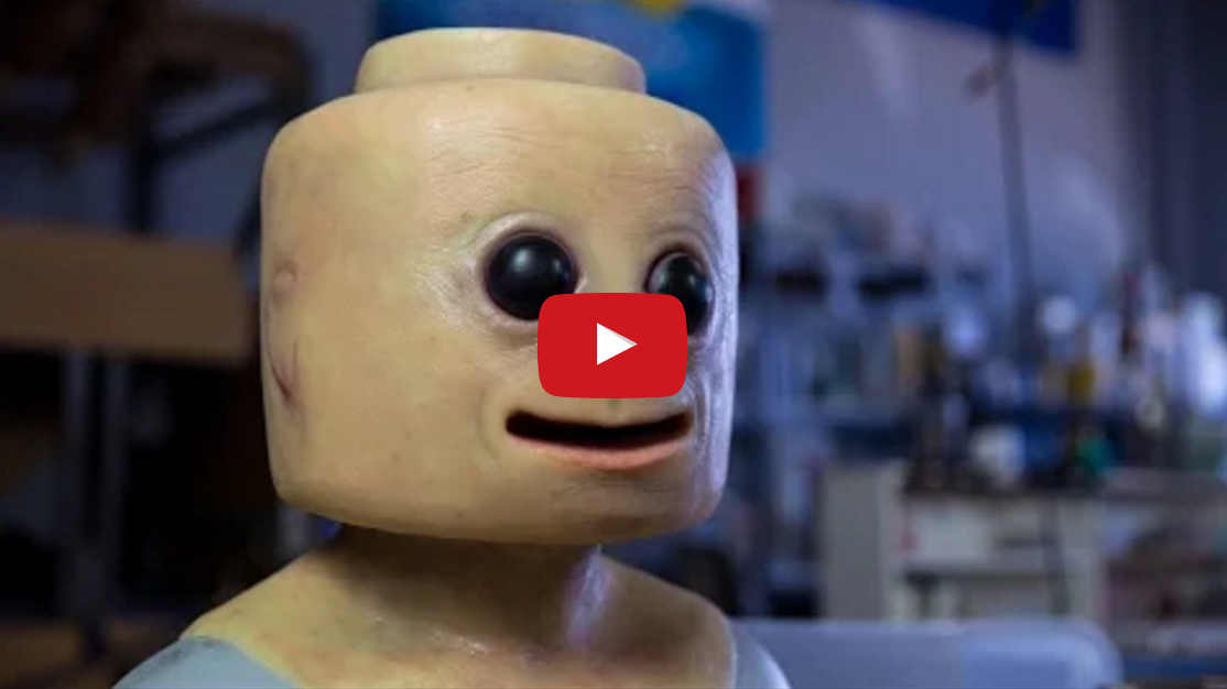 While attending this year’s San Diego Comic-Con, Tested‘s Norman Chan got the chance to check out the latest project from Burbank, California-based mask and movie prop designer Frank Ippolito, a super creepy humanized version of a LEGO minifig head.
