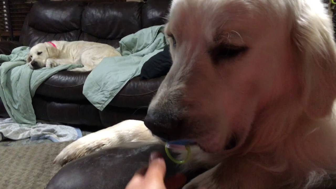 Jill Addington recently shared another video (watch part one) of her adorably stubborn golden retriever, Max, rejecting her attempts to remove his coveted baby pacifier from his mouth.