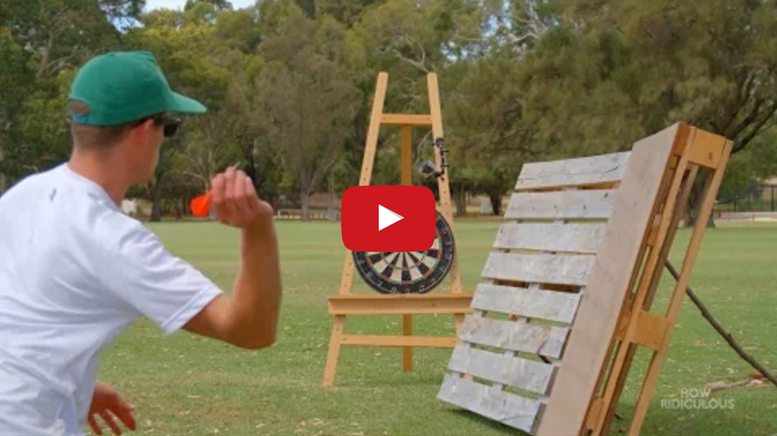 For their latest video, trick shot group, How Ridiculous (Australia’s answer to Dude Perfect) take dart throwing to a crazy new level with their unbelievable bullseye trick shots.