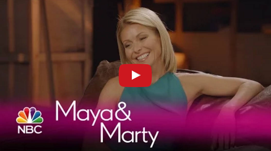In this sketch from Maya Rudolph and Martin Short’s NBC variety show, Maya & Marty, Jiminy Glick (Martin Short) chats with actress and talk show host, Kelly Ripa, on his talk show, Jiminy Glick’s Celebrity Sensations.