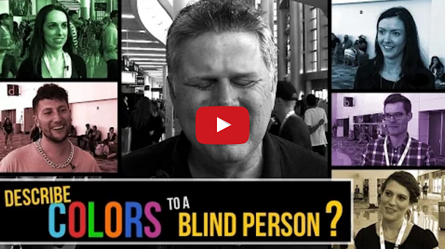 Tommy Edison, who has been blind since birth, attempts to guess colors based on descriptions from people he met while attending this year’s Vidcon, an annual online video convention in Anaheim, California.