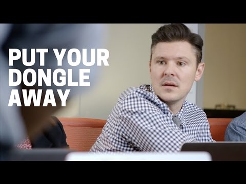 In this funny promotion for Zoom Rooms from comedy duo Tripp & Tyler (Tripp Crosby and Tyler Stanton), co-workers in an office meeting get carried away with dongle-related innuendos.