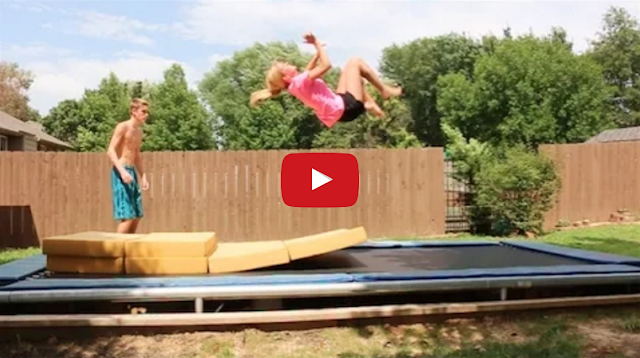Son Attempts to Teach His Mom to Do a Backflip on Trampoline