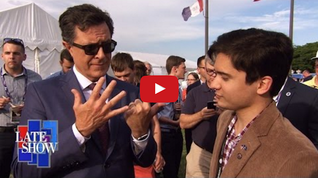 Stephen Colbert Plays ‘Trump or False’ With RNC Attendees ByTastefully Offensive July 21, 2016 Late Show host Stephen Colbert visited the Republican National Convention this week to chat with delegates and play the quiz game “Trump or False” where players hear a quote and try to guess if it’s something Donald Trump actually said.