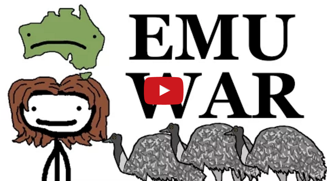 (PG-13 language) Sam O’Nella created this amusing animated retelling of the failed emu management military operation, known as the Great Emu War, that took place in the 1930s in Western Australia. RIP fallen emu soldiers.