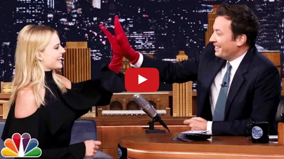 Australian actress and Suicide Squad star Margot Robbie and Tonight Show host Jimmy Fallon play the new Tonight Show game, “Jinx Challenge,” where they draw random categories and attempt to shout out the same words at the same time (while wearing a weird glove for some reason).