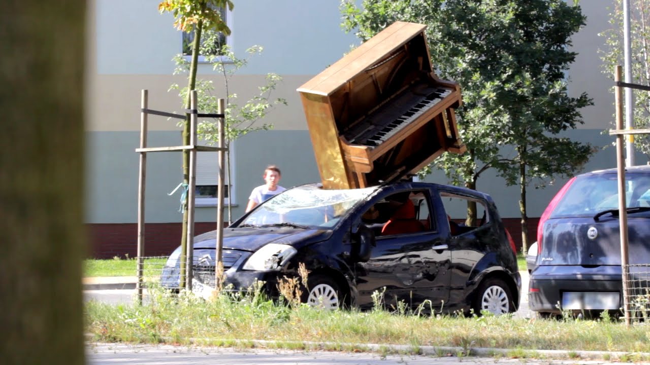 Polish YouTube prankster Sadam puts a lot of effort into convincing his friend, Wojtek, that a full-sized piano somehow landed on top of his car in the middle of the night.