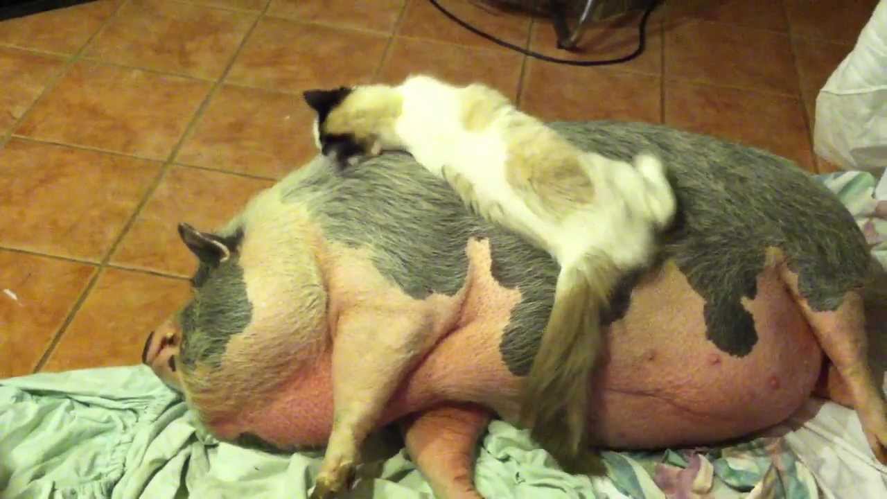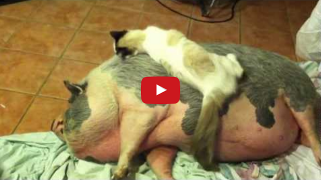 Cat Cuddles With Huge Pot-Bellied Pig