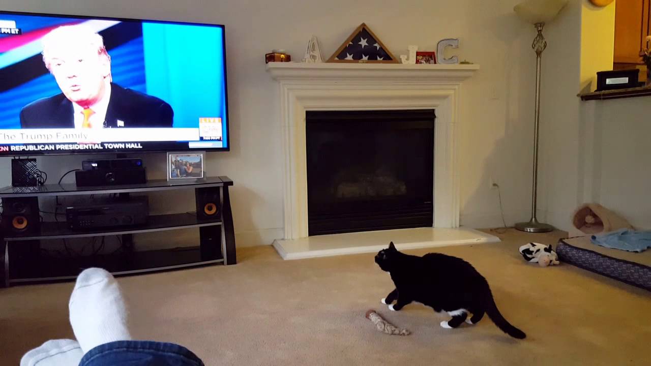 Cat Hates Donald Trump ByTastefully Offensive August 14, 2016 Andrew Dodson’s cat stops in his tracks, then runs and hides when he sees Republican presidential nominee Donald Trump being interviewed on TV.