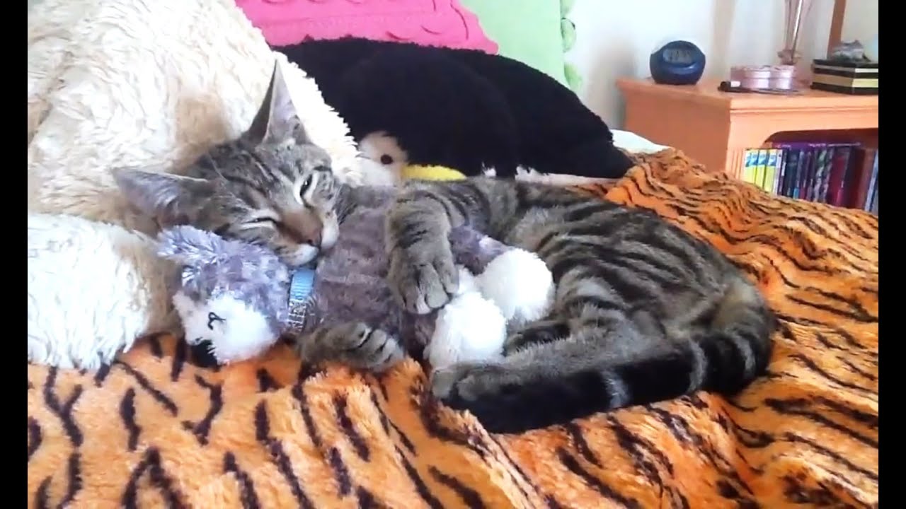 Mr. FunnyMals compiled this ridiculously cute clip compilation of cats and kittens cuddling and grooming their favorite teddy bears.