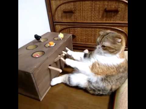 Chubby Cat Plays Homemade Whack-a-Mole Game ByTastefully Offensive August 23, 2016 While sitting up like a furry little human, this well-fed Scottish fold cat lazily entertains himself with a homemade paw-operated whack-a-mole game.