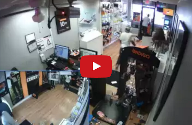 Here’s the full, unedited security camera footage of the attempted robbery: