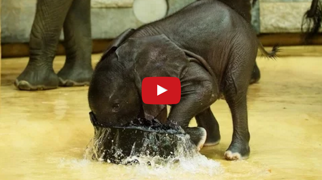 YouTube user Animaloox filmed this adorable video of a (relatively) tiny baby elephant having fun splishing and splashing in a small bucket of water.