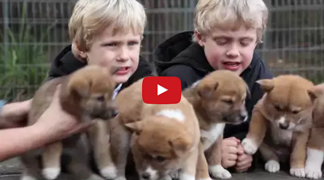 Dingo Puppy Photo Shoot by Tastefully Offensive This adorable litter of five dingo puppies mostly cooperated while getting their photo taken with cute twins Levi and Tate Staples at the Featherdale Wildlife Park in Sydney, Australia. [via Natsdorf]