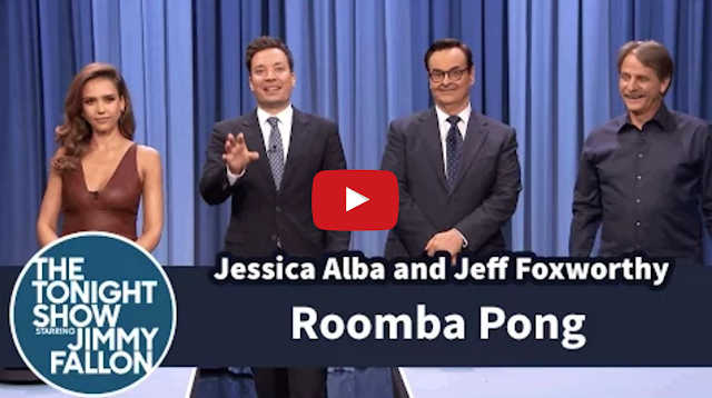 Jessica Alba and Jeff Foxworthy Play Roomba Pong on ‘The Tonight Show’ by Tastefully Offensive Actress Jessica Alba and Tonight Show host Jimmy Fallon face off against comedian Jeff Foxworthy and Tonight Show announcer Steve Higgins in a Roomba vacuum-powered version of the classic party drinking game, Beer Pong.