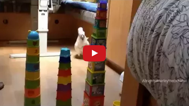 Harley, the famously neurotic white cockatoo, continues her quest to destroy every cup tower she comes across. In this video, Harley goes Godzilla on some new cups she’s never seen before.