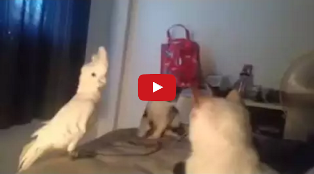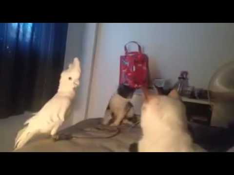 Meowing Cockatoo Tries to Blend in With Cats ByTastefully Offensive August 8, 2016 This clever umbrella cockatoo tries to befriend a group of cute cats by speaking their language, but the interaction with the cautious young felines is rather tense.