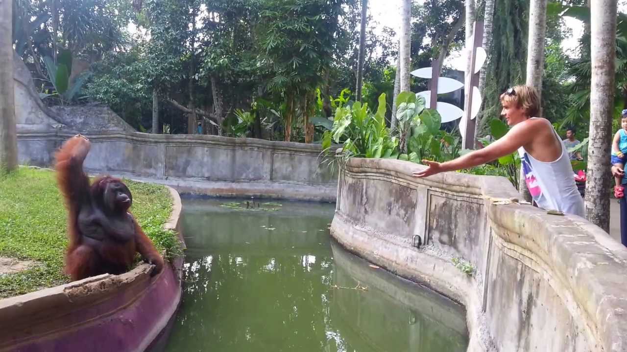 Vitaly Razygrsev filmed this amusing interaction between his friend and a clever Bornean orangutan at the Moscow Zoo in Russia.