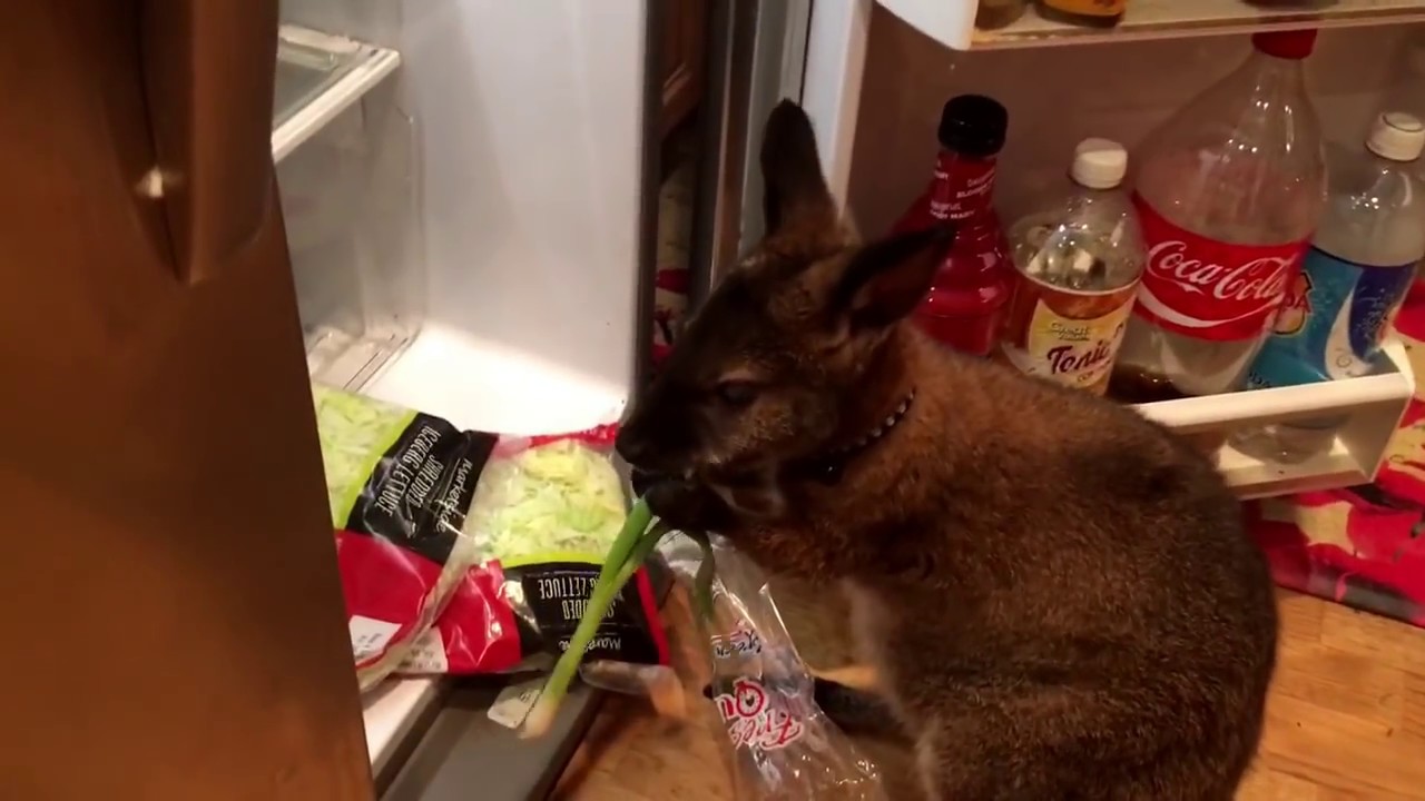 Pet Wallaby Raids the Fridge ByTastefully Offensive August 6, 2016 Whenever his human opens the refrigerator, Welby, the pet wallaby, searches for veggies like a hungry teenager looking for snacks.