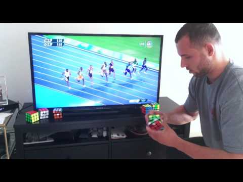 American speed cubing champion Anthony Brooks attempts to solve a Rubik’s cube in less time than it took Jamaica’s Usain Bolt to complete his gold-medal-winning 9.81s run in the 100m race at the 2016 Rio Olympics.