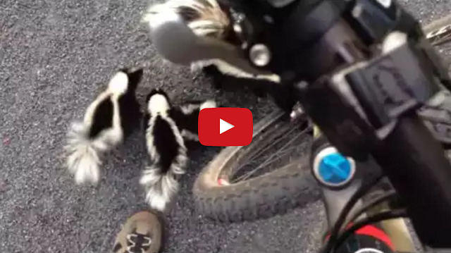 While biking through the beautiful Pointe-Taillon National Park in Quebec, Canada, Francois Arsenault was approached by a mother skunk and her four ridiculously cute babies, who briefly stopped to say hello before waddling on their way.