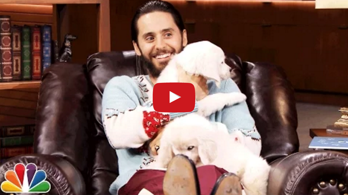 Tonight Show host Jimmy Fallon and Suicide Squad star Jared Leto play “Pup Quiz,” a trivia game where the winner of each round is rewarded with a fluffy golden retriever puppy to snuggle with.