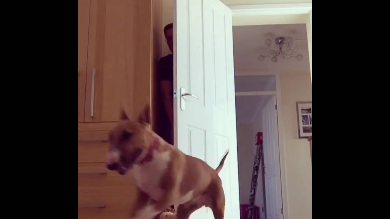 Lola, the English bull terrier, loves playing hide and seek with her human, but often struggles to find him, even when he’s right under her nose. Watch more of their hide and seek game below.