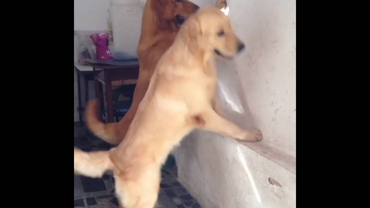 In this cute clip, two adorably confused golden retriever brothers take turns trying to catch a spot of light reflecting on a wall.