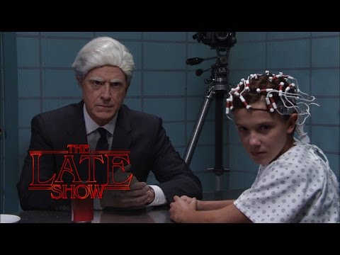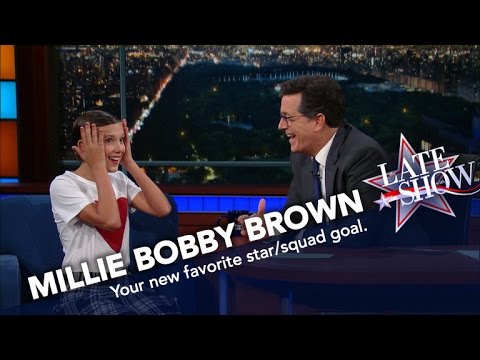 In this clip from last night’s episode of The Late Show, host Stephen Colbert chats with 12-year-old British actress Millie Bobby Brown, who plays “Eleven” on Netflix’s supernatural horror series, Stranger Things, about ’80s technology, her biggest fears, and what it takes to join her squad. In the clip below, Millie and Stephen spoof Eleven’s powers in a Late Show cold open sketch.