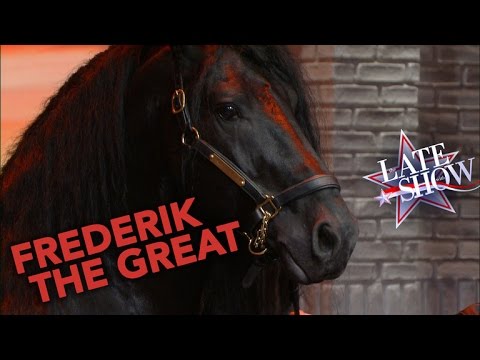 In this clip from The Late Show, host Stephen Colbert meets Stacy Nazario and her majestically-maned friesian stallion, Frederik the Great, who’s been unofficially crowned the most beautiful horse in the world.