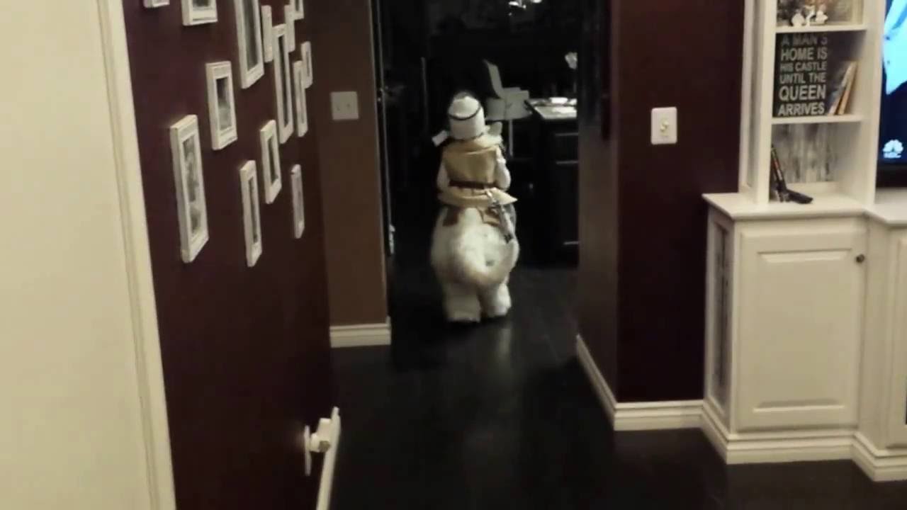 Clint Case shared this cute video of his young son trying out his completely homemade Halloween costume of Luke Skywalker riding a Tauntaun from Star Wars: The Empire Strikes Back.