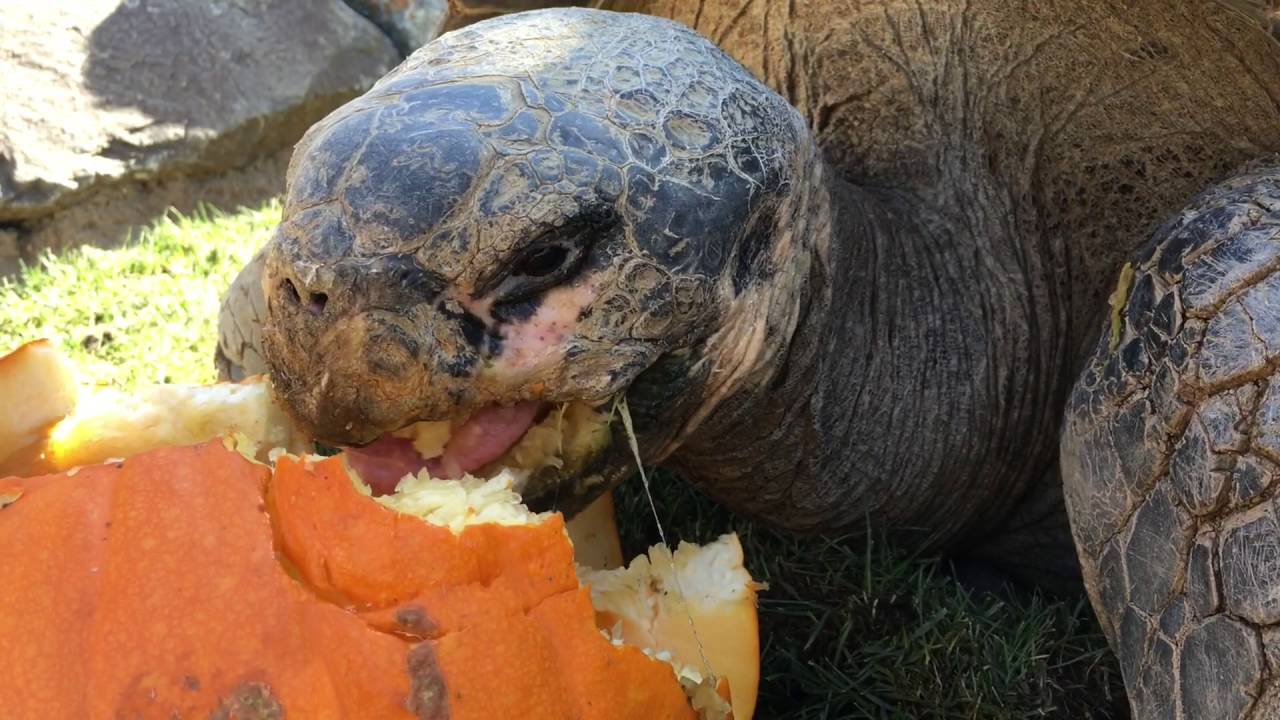 The San Diego Zoo in San Diego, California shared this cute video of their Galapagos tortoise elders, some of which are over 100-years-old, enjoying a fall treat of fresh pumpkins.