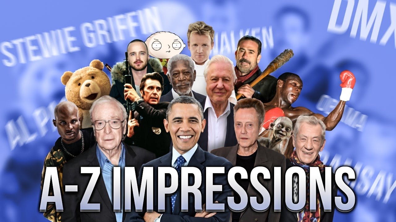 Cardiff, Wales-based voice actor and impressionist Scheiffer Bates performs 26 spot-on impressions of iconic actors and pop culture characters, one for each letter of the alphabet.