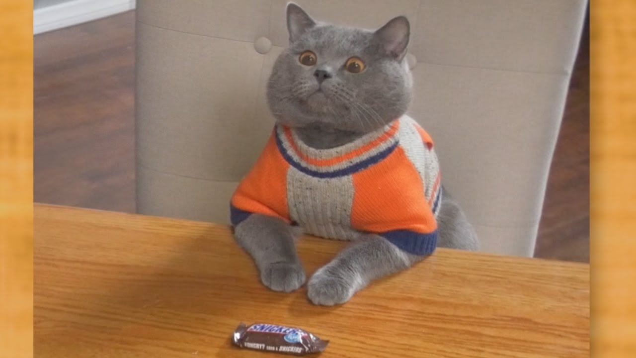 Prince Michael, the cat, devilishly fools VFX artists Zach King and Aaron Benitez into sharing some of their Halloween candy haul.