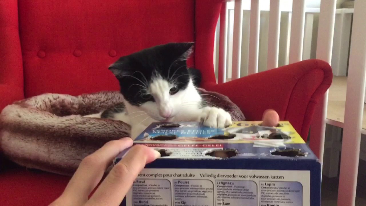 Simon Newport risks losing a finger while entertaining his adorable cat, Wiske, with a finger-powered game of Whack-a-Mole.