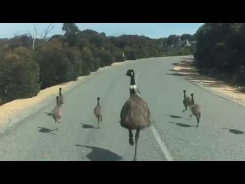 Goin’ Off Safaris shared this amusing video of a emu dad and his seven cute babies hogging both lanes of a road in Port Lincoln, South Australia.