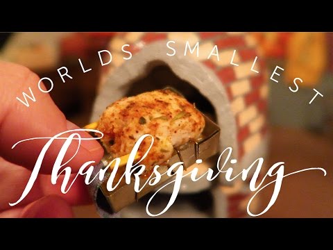 In the latest episode of his miniaturized cooking series, “Walking With Giants,” artist Jay Baron celebrates Thanksgiving by meticulously preparing a mini Thanksgiving feast.