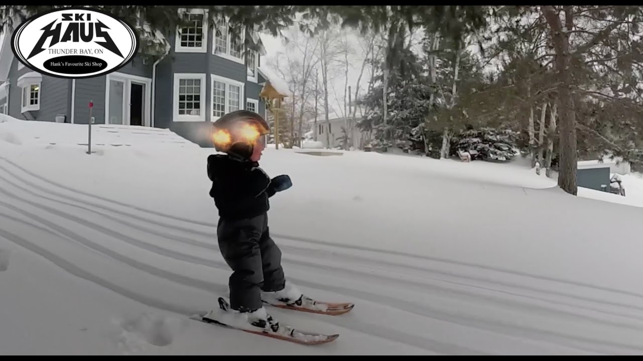 YouTube user Blakech films as his adorable two-year-old son Hank (Hankster) impressively skis down freshly powdered slopes, for the first time, in their backyard in Kingston, Ontario, Canada.