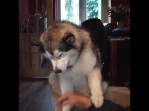 Lovable Phil, the Alaskan malamute dog, gets a little impatient when his human start to slack on his belly rub duty.