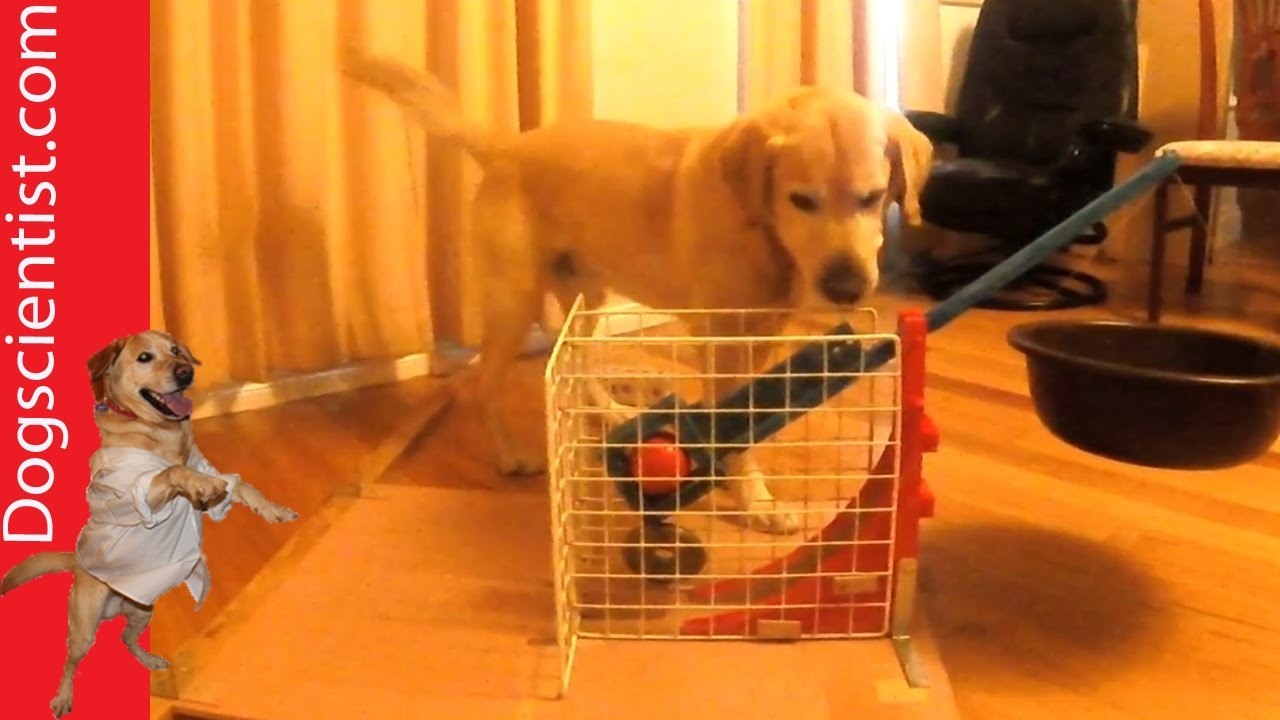 Albert, the labrador retriever, aka The Dog Scientist, who previously learned about pulley systems, siphoning, the Archimedes principle, and crankshafts, continues his scientific studies with a lesson in gravity.