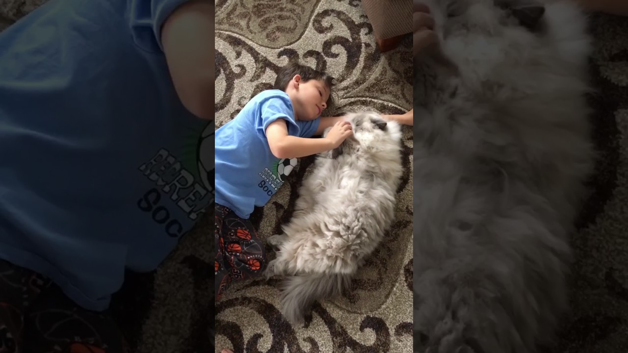 Boy is Best Friends with Giant Fluffy Cat