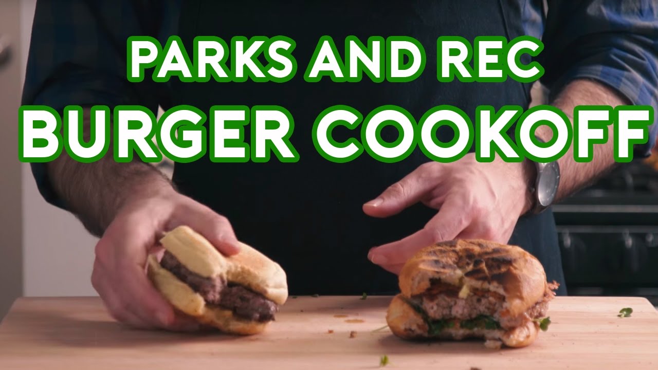 In this episode of “Binging with Babish,” a cooking series where home chef Andrew Rea recreates iconic dishes from films and TV shows, Andrew prepares his take on the turkey burger vs. beef burger cook-off between Chris Traeger and Ron Swanson in the tenth episode of the third season of the hit NBC sitcom, Parks and Recreation.