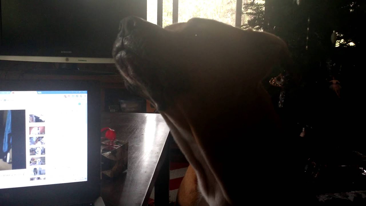 Kano, the pitbull, sounds like he’s running out of batteries as he adorably attempts to howl along with a dog in a YouTube video. See more of Kano on his Facebook page.