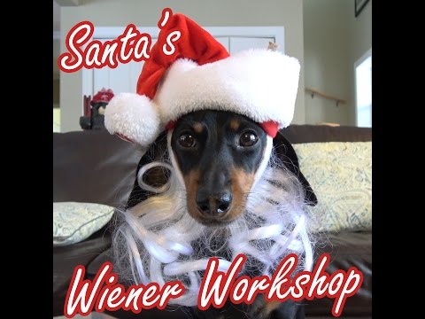 While working in Santa’s workshop, Crusoe, the celebrity dachshund, discovers how hard it is to wrap gifts without thumbs while his brother, Oakley, thoroughly inspects each toy.